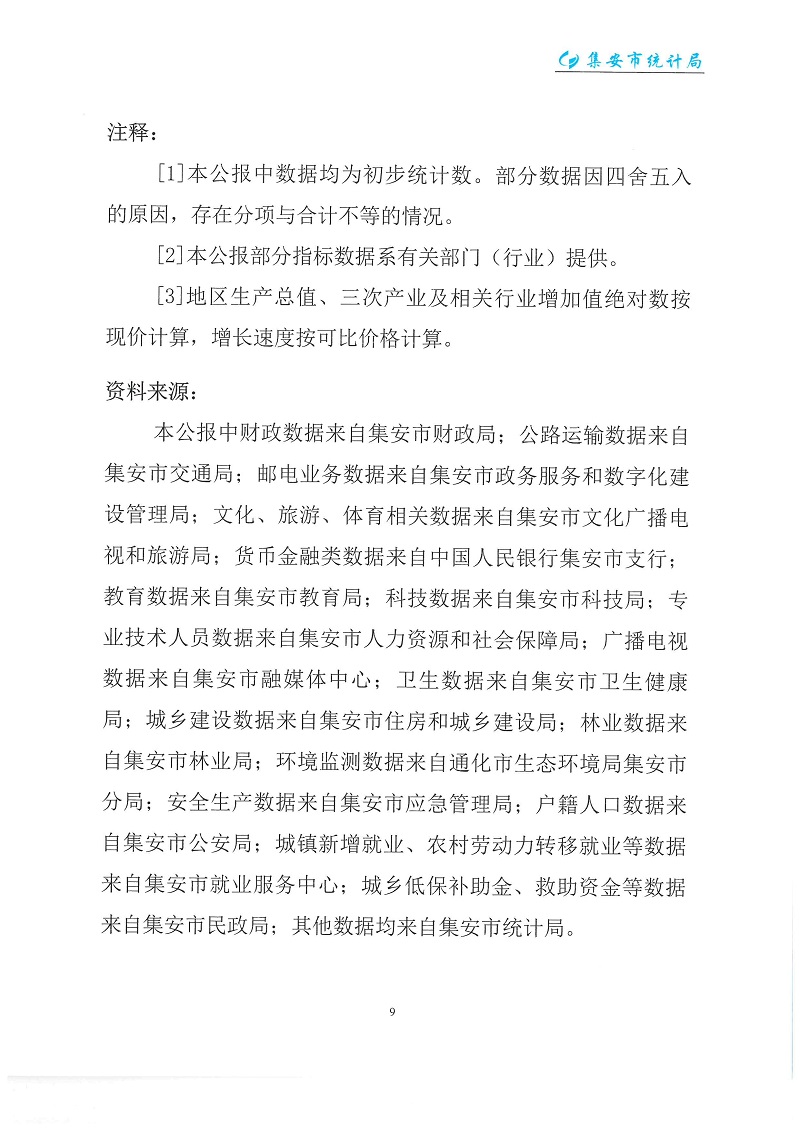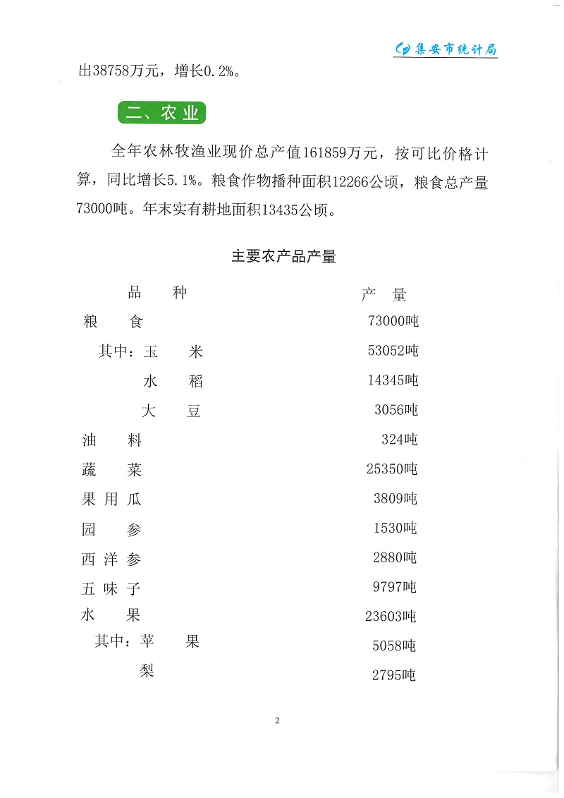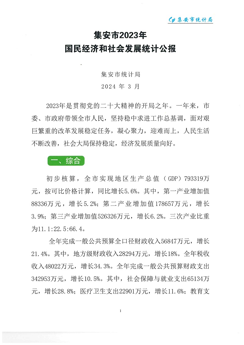 (吉林省)2023年通化市集安市國民經(jīng)濟(jì)和社會發(fā)展統(tǒng)計公報