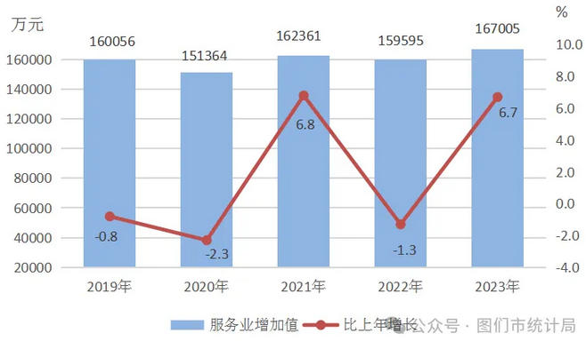 圖4 2019—2023年服務(wù)業(yè)增加值及其增長速度