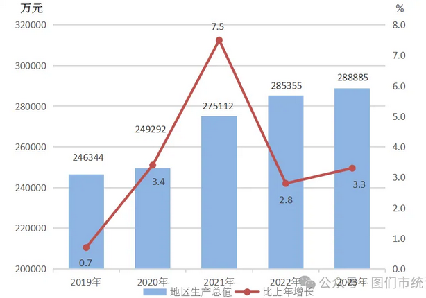 圖1 2019—2023年地區(qū)生產(chǎn)總值及其增長速度