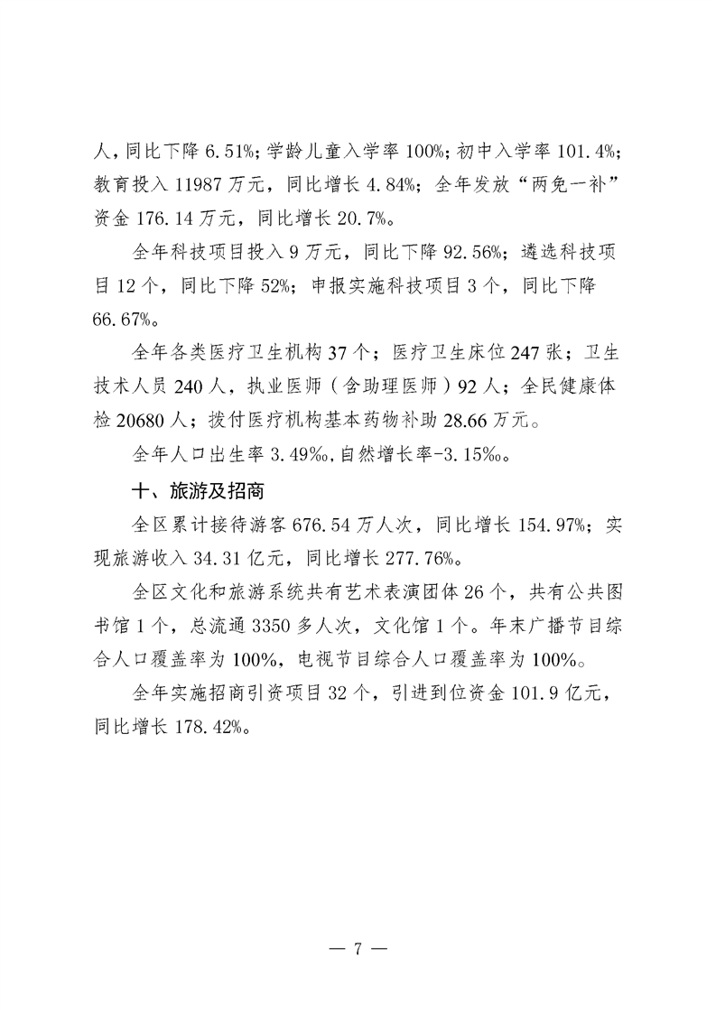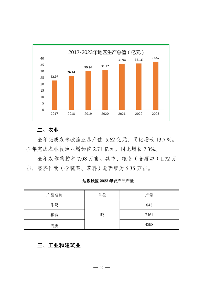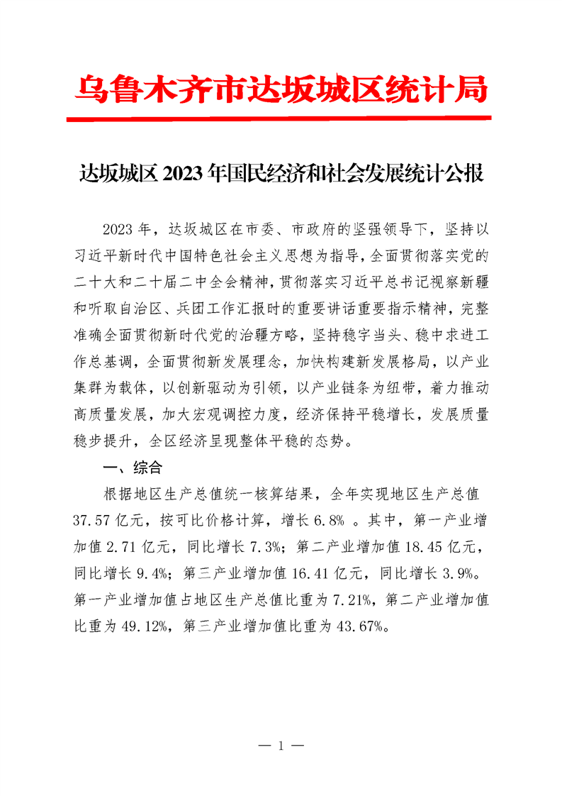 (新疆)2023年烏魯木齊市達坂城區(qū)國民經(jīng)濟和社會發(fā)展統(tǒng)計公報