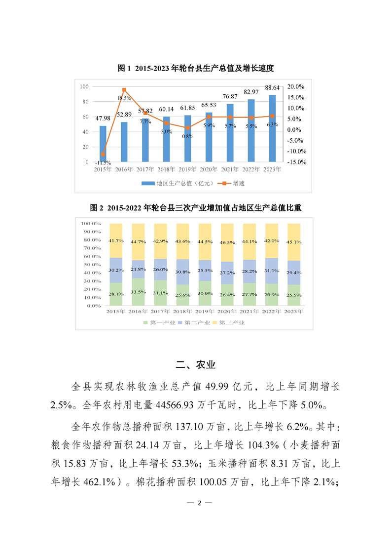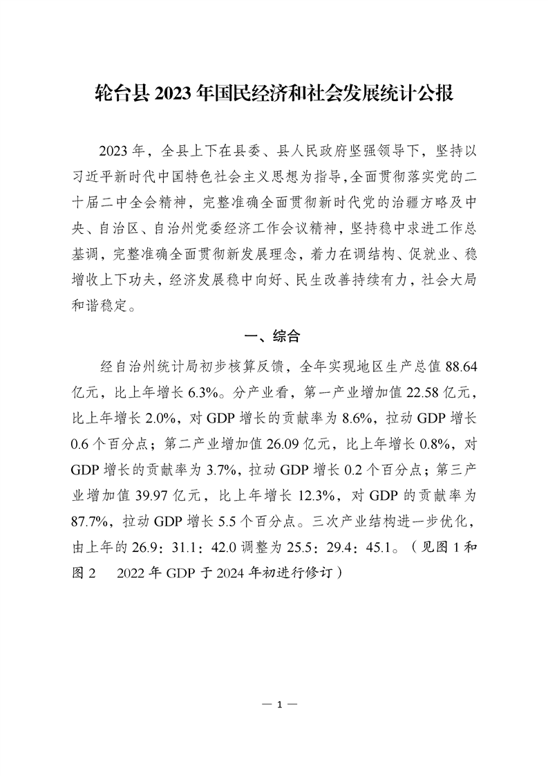 (新疆)2023年巴音郭楞蒙古自治州輪臺(tái)縣國(guó)民經(jīng)濟(jì)和社會(huì)發(fā)展統(tǒng)計(jì)公報(bào)