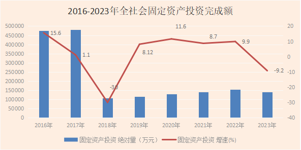 2023年,全縣完成固定資產(chǎn)投資13.95億元,同比下降9.2%,其中12月當(dāng)月完成投資0.35億元,同比下降75.9%,環(huán)比下降23.6%。