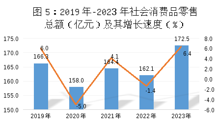 全年社會(huì)消費(fèi)品零售總額172.5億元,比上年增長(zhǎng)6.4%。按經(jīng)營(yíng)地統(tǒng)計(jì),城鎮(zhèn)消費(fèi)品零售額172.5億元,增長(zhǎng)6.4%。