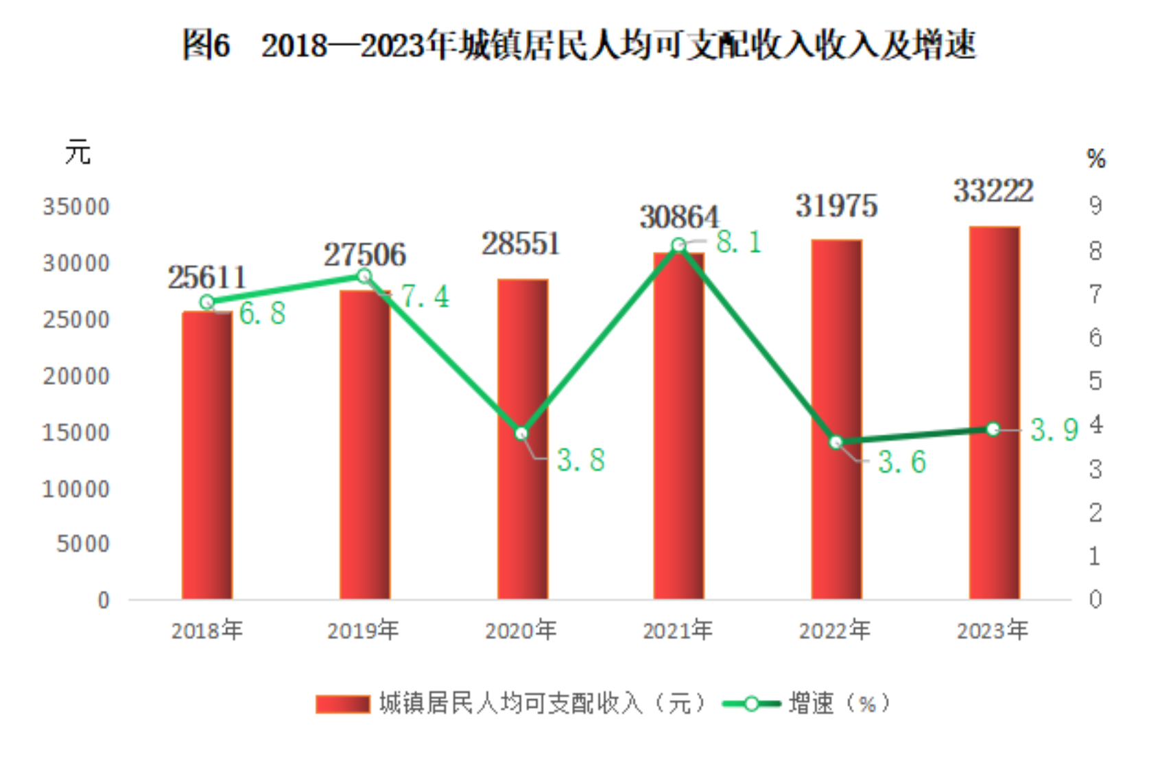 全年全縣居民人均可支配收入21273元,比上年名義增長(下同)5.4%。按常住地分,城鎮(zhèn)居民人均可支配收入33222元,增長3.9%;農村居民人均可支配收入13663元,增長7.1%。城鄉(xiāng)居民人均收入比為2.43:1,比上年縮小0.08。