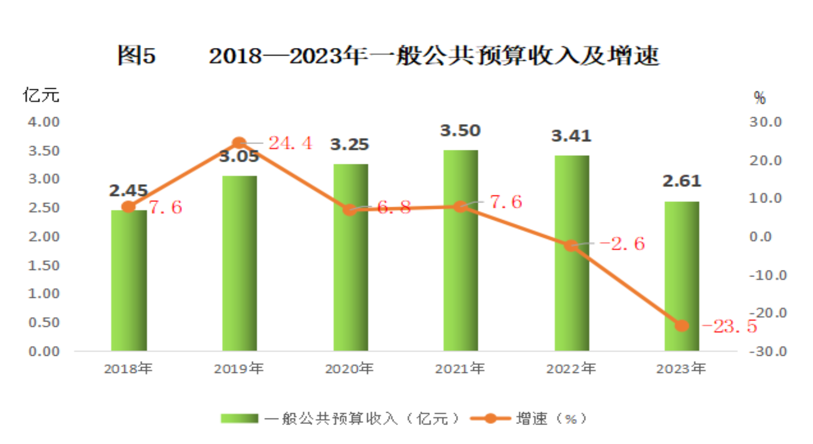全年一般公共預算收入2.61億元,比上年下降23.5%;一般公共預算支出20.24億元,下降21.3%。