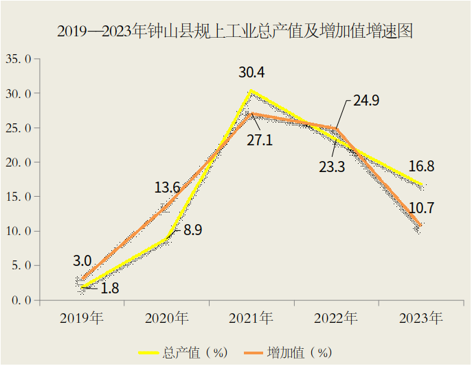 2023年全縣全部工業(yè)總產(chǎn)值增長(zhǎng)15.1%,規(guī)模以上工業(yè)企業(yè)產(chǎn)值增長(zhǎng)16.8%,增加值增長(zhǎng)10.7%;規(guī)模以上工業(yè)企業(yè)利潤(rùn)總額9.2億元,同比增長(zhǎng)13.9%。