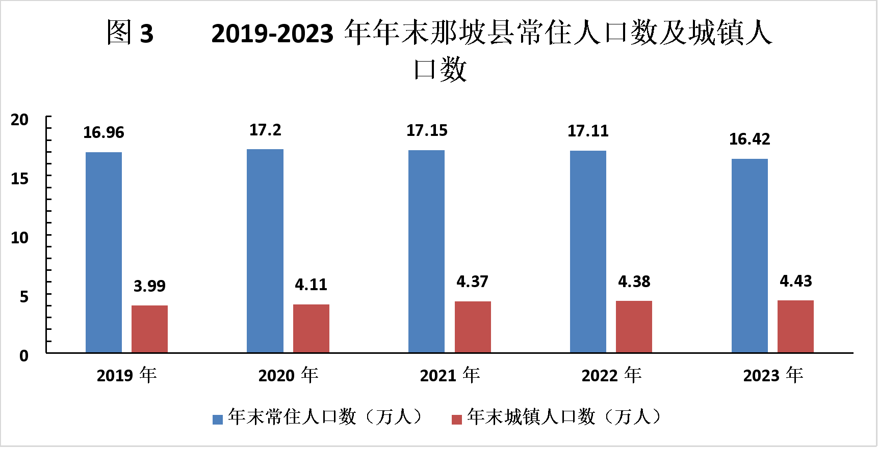 年末全縣常住人口[3]16.42萬人,比上年末減少0.69萬人,其中城鎮(zhèn)常住人口4.43萬人,占常住人口比重(常住人口城鎮(zhèn)化率)為27.0%,比上年末提高1.4個百分點。