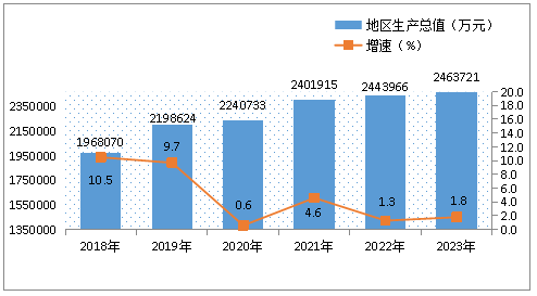 圖1 ?2018年—2023年地區(qū)生產總值及增長速度