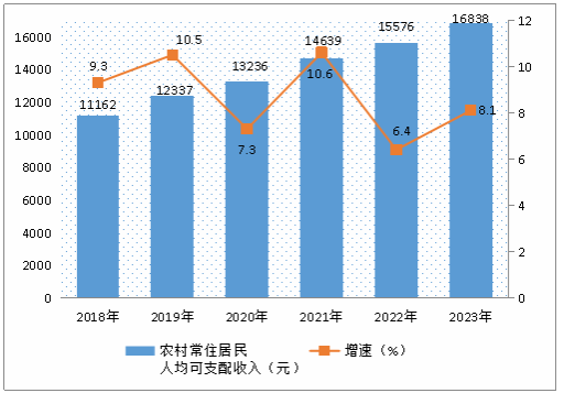 圖15 ?2018年—2023年農村常住居民人均可支配收入