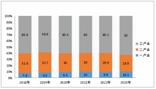 圖2 ?2018年—2023年三次產業(yè)增加值占GDP比重
