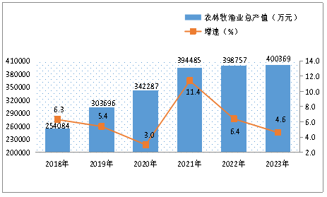 圖5 ?2018年—2023年農林牧漁業(yè)總產值及增速