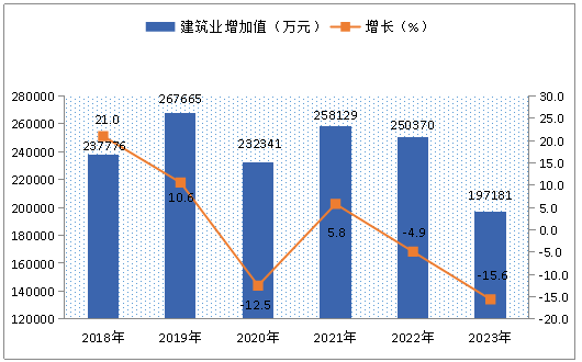 圖8 ?2018年—2023年建筑業(yè)增加值及增速