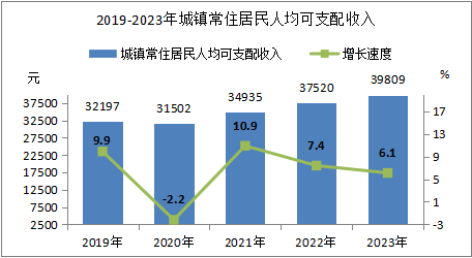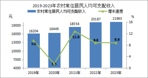 2023年,全縣城鎮(zhèn)常住居民人均可支配收入39809元,同比增長(zhǎng)6.1%;農(nóng)村常住居民人均可支配收入21963元,同比增長(zhǎng)8.8%。城鎮(zhèn)常住居民人均生活消費(fèi)支出31440元,同比增長(zhǎng)8.2%,其中:食品消費(fèi)11245元,教育文化娛樂服務(wù)消費(fèi)4288元;農(nóng)村常住居民人均生活消費(fèi)支出18222元,同比增長(zhǎng)13.2%,其中:食品消費(fèi)6536元,教育文化娛樂服務(wù)消費(fèi)2285元。