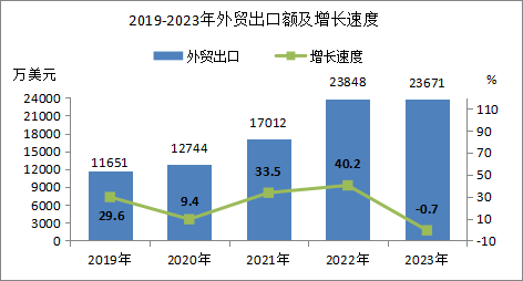 全年完成外貿(mào)進(jìn)出口總額2.54億美元,比上年增長(zhǎng)6.2%,外貿(mào)出口總額2.37億美元,比上年減少0.7%。實(shí)際利用外資3萬美元。