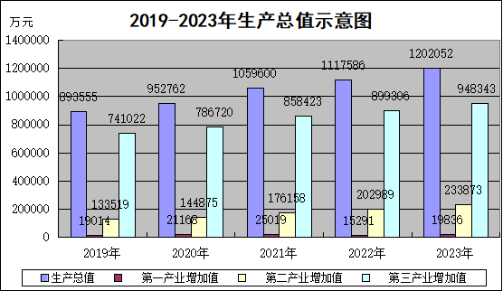初步核算,全年全市地區(qū)生產(chǎn)總值1202052萬元,比上年增長6.3%。其中,第一產(chǎn)業(yè)增加值19836萬元,比上年增長5.9%;第二產(chǎn)業(yè)增加值233873萬元,增長13.1%;第三產(chǎn)業(yè)增加值948343萬元,比上年增長4.9%。第一產(chǎn)業(yè)增加值占地區(qū)生產(chǎn)總值比重為1.7%,第二產(chǎn)業(yè)增加值比重為19.5%,第三產(chǎn)業(yè)增加值比重為78.8%。按常住人口計(jì)算,全年人均地區(qū)生產(chǎn)總值32731元,比上年增長6.1%。全年全市萬元地區(qū)生產(chǎn)總值能耗比上年下降3.5%。