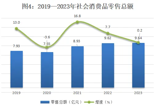 全年社會(huì)消費(fèi)品零售總額比上年增長(zhǎng)0.2%。其中限額以上消費(fèi)品零售額下降7.3%。