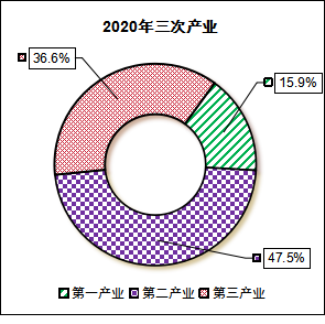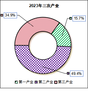 根據(jù)市(縣)生產(chǎn)總值統(tǒng)一核算結(jié)果,2023年三原縣實(shí)現(xiàn)地區(qū)生產(chǎn)總值249.45億元,按可比價(jià)格計(jì)算,同比增長(zhǎng)5.1%。分產(chǎn)業(yè)看,第一產(chǎn)業(yè)增加值39.08億元,增長(zhǎng)0.6%;第二產(chǎn)業(yè)增加值123.35億元,增長(zhǎng)3.6%;第三產(chǎn)業(yè)增加值87.02億元,增長(zhǎng)0.9%。三次產(chǎn)業(yè)占比:15.7:49.4:34.9,與“十三五”末(2020年)的15.9:47.5:36.6相比,一產(chǎn)下降了0.2個(gè)百分點(diǎn),二產(chǎn)上揚(yáng)了1.9個(gè)百分點(diǎn),三產(chǎn)下調(diào)了1.7個(gè)百分點(diǎn)。(見2023年與“十三五”末(2020年)三次產(chǎn)業(yè)結(jié)構(gòu)對(duì)比圖一、圖二)。2023年,全縣非公有制經(jīng)濟(jì)增加值完成150.13億元,非公有制經(jīng)濟(jì)增加值占GDP比重為60.2%;單位GDP能耗降低率為 -16.66%;全年新增市場(chǎng)主體4255戶,較上年增長(zhǎng)15.6%。