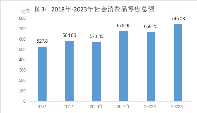 全年社會(huì)消費(fèi)品零售總額745.08億元,比上年增長(zhǎng)11.3%。批發(fā)業(yè)銷售額增長(zhǎng)14.0%,零售業(yè)銷售額增長(zhǎng)9.6%,住宿業(yè)營(yíng)業(yè)額增長(zhǎng)16.0%,餐飲業(yè)營(yíng)業(yè)額增長(zhǎng)17.4%。