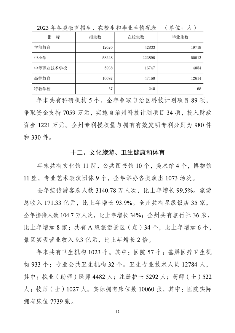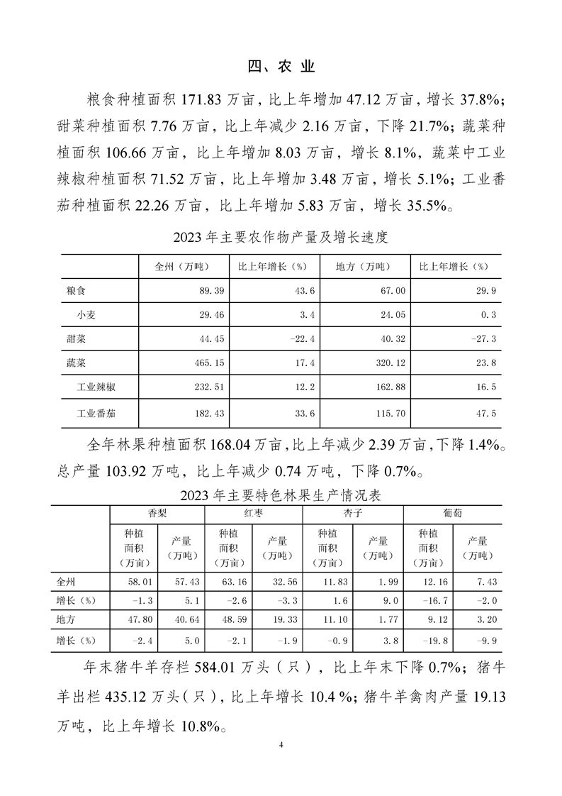 (新疆)2023年巴音郭楞蒙古自治州國(guó)民經(jīng)濟(jì)和社會(huì)發(fā)展統(tǒng)計(jì)公報(bào)