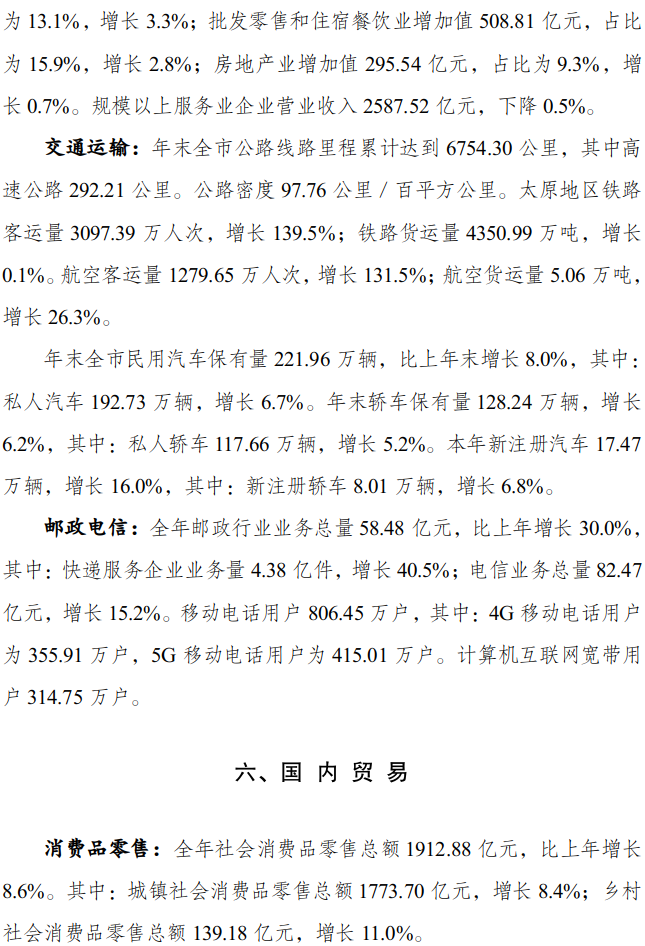(山西?。?023年太原市國民經(jīng)濟(jì)和社會發(fā)展統(tǒng)計(jì)公報(bào)