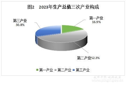 根據(jù)縣區(qū)生產(chǎn)總值統(tǒng)一核算結(jié)果,2023年平利縣生產(chǎn)總值(GDP)增長(zhǎng)1.0%。其中,第一產(chǎn)業(yè)增加值增長(zhǎng)5.2%;第二產(chǎn)業(yè)增加值增長(zhǎng)0.3%;第三產(chǎn)業(yè)增加值與上年持平。三次產(chǎn)業(yè)比16.9﹕52.3﹕30.8。人均生產(chǎn)總值比上年增長(zhǎng)1.9%。
