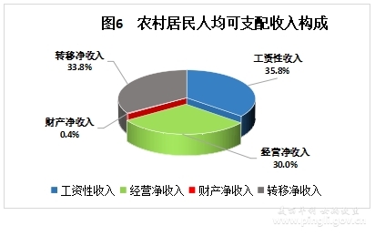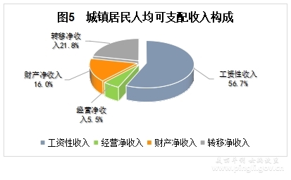 據(jù)城鄉(xiāng)一體化住戶調(diào)查,全年全體居民人均可支配收入22909元,比上年增加1529元,同比增長(zhǎng)7.2%。其中,工資性收入增長(zhǎng)7.2%,占可支配收入的比重為48.8%;經(jīng)營(yíng)凈收入增長(zhǎng)6.9%,占比14.8%;財(cái)產(chǎn)凈收入增長(zhǎng)7.6%,占比10.1%;轉(zhuǎn)移凈收入增長(zhǎng)7.1%,占比26.3%。