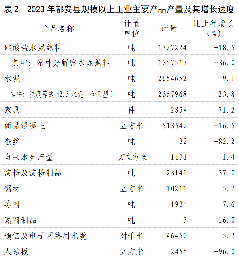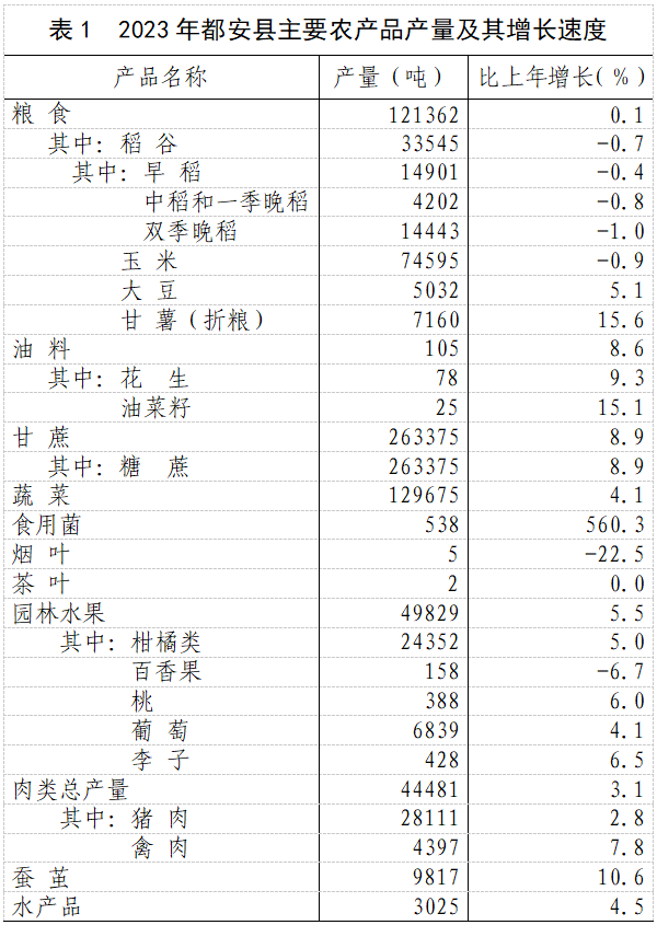 [1]本公報中2023年數(shù)據(jù)均為初步統(tǒng)計數(shù)據(jù),最終數(shù)據(jù)以《都安統(tǒng)計年鑒(2023)》為準。部分數(shù)據(jù)因四舍五入的原因,存在總計與分項合計不等的情況。