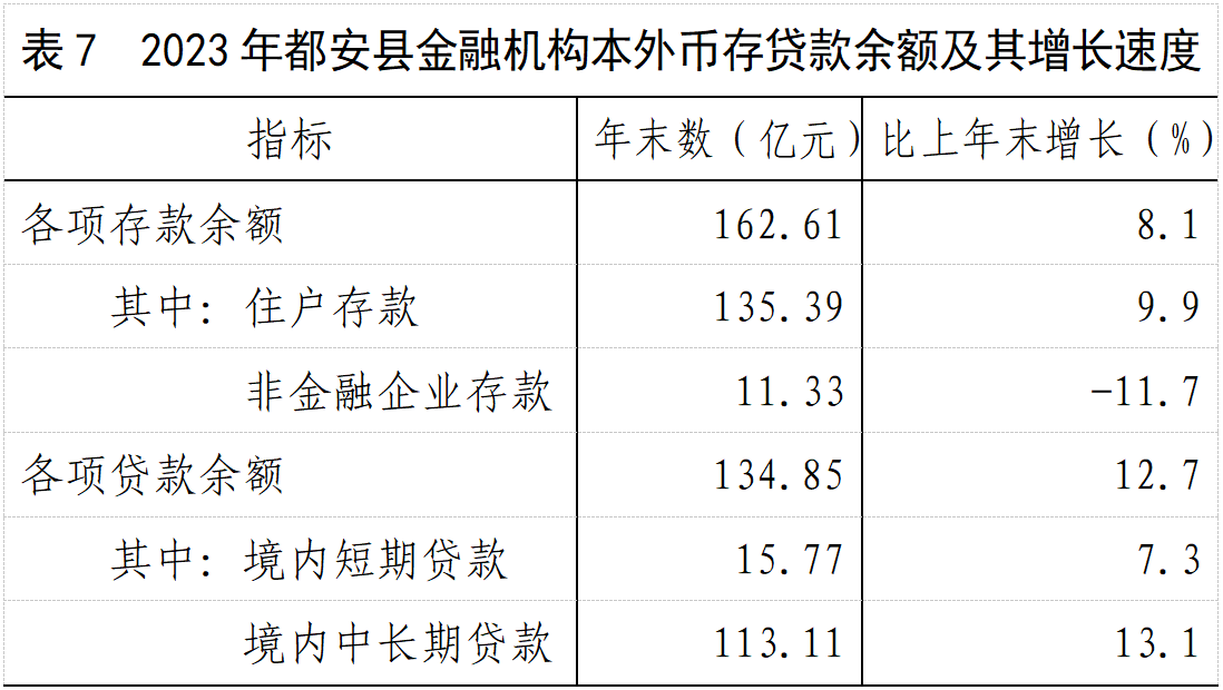 年末全縣金融機構本外幣各項存款余額162.61億元,比年初增加12.19億元,其中人民幣各項存款余額162.52億元,比年初增加12.21億元。年末金融機構本外幣各項貸款余額134.85億元,比年初增加15.18億元,其中人民幣各項貸款余額134.85億元,比年初增加15.18億元。