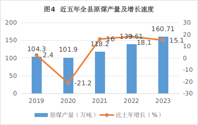 全年規(guī)模以上工業(yè)比上年同比增長30.9%。實現營業(yè)收入550473.4萬元,利潤總額275443.3萬元。生產原煤160.71萬噸,比上年增長15.1%。生產洗精煤86.08萬噸,開采天然氣195543.54萬立方米,全年發(fā)電量20178.59萬千瓦時。