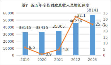 全年全縣財政總收入累計完成58141萬元,比上年增長25.75%。一般公共財政預算收入26720萬元,增長59%。稅收收入完成15110萬元,增長25%。