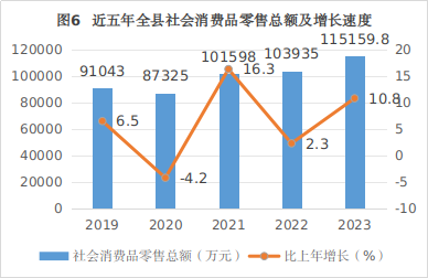 全年全縣批發(fā)和零售業(yè)增加值19820萬元,比上年增長11.6%;交通運輸、倉儲和郵政業(yè)增加值8894萬元,增長31.5%;住宿和餐飲業(yè)增加值9265萬元,增長11.9%;金融業(yè)增加值9352萬元,增長2.9%;房地產業(yè)增加值3968萬元,增長4.1%;其他服務業(yè)增加值46441萬元,增長8.7%。全年規(guī)模以上服務業(yè)企業(yè)營業(yè)收入11453.2萬元,利潤總額5667.1萬元。