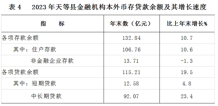 年末金融機(jī)構(gòu)本外幣各項(xiàng)存款余額132.84億元,比年初增加12.85億元,其中住戶存款106.76億元,比年初增加10.21億元。年末金融機(jī)構(gòu)本外幣各項(xiàng)貸款余額115.21億元,比年初增加18.80億元。
