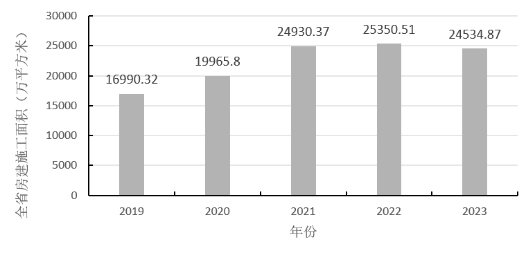 圖3-1 2019-2023年全省房建施工面積統(tǒng)計(jì)圖