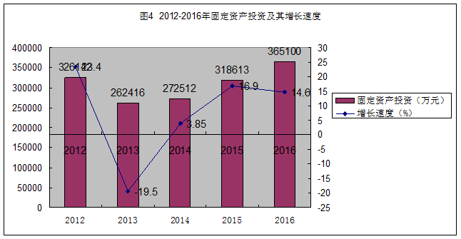 2016年完成500萬元以上全社會固定資產(chǎn)投資36.51億元,同比增長14.6%。其中全縣固定資產(chǎn)縣本級完成34.85億元,同比增長15.1%;全年500萬元以上投資項目137個,其中新開工項目107個,全部投產(chǎn)項目89個。