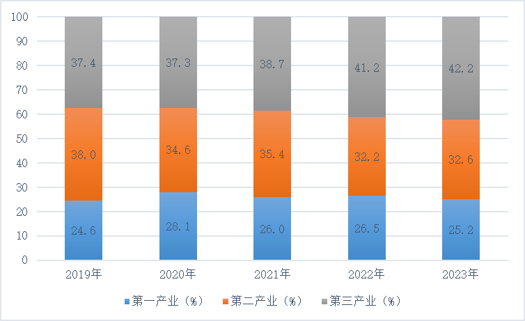 圖2 2019-2023年儀隴縣三次產(chǎn)業(yè)增加值占地區(qū)生產(chǎn)總值比重