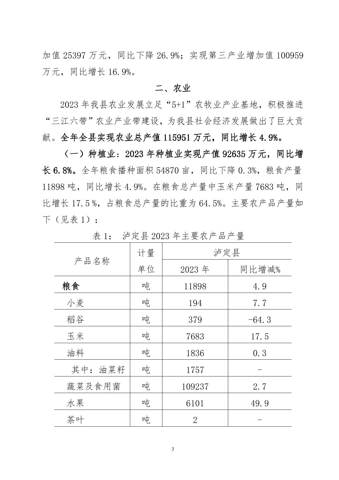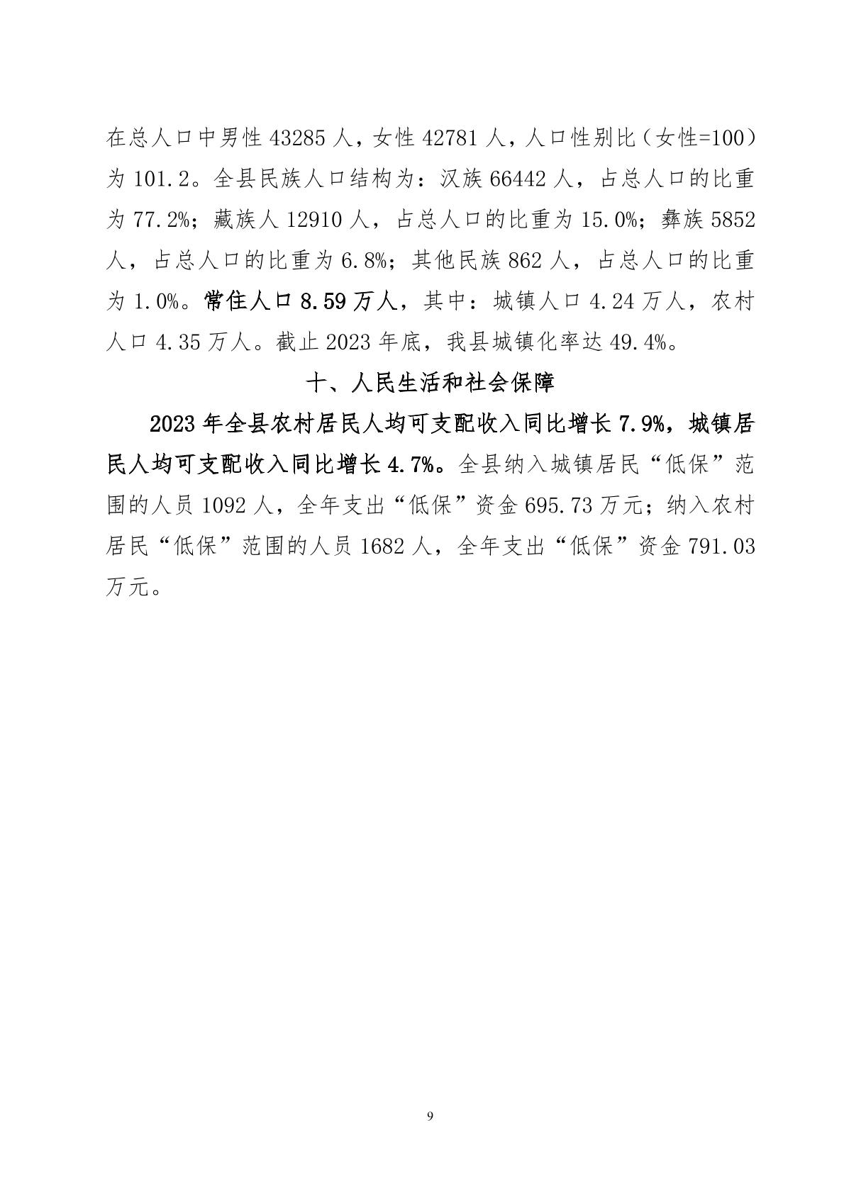 2023年甘孜藏族自治州瀘定縣人民政府國民經濟和社會發(fā)展統(tǒng)計公報(2025年更新)