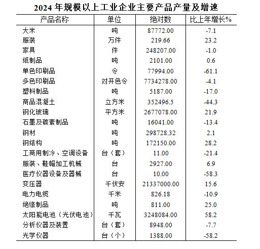 規(guī)模以上工業(yè)統(tǒng)計(jì)的主要產(chǎn)品產(chǎn)量中,太陽能電池(光伏電池)產(chǎn)量比上年增長58.2%,鋼結(jié)構(gòu)增長28.2%,絕緣制品增長25.0%,服裝增長23.2%,鋼化玻璃增長21.9%。