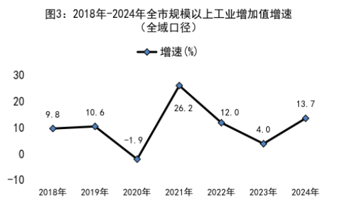 全年規(guī)模以上工業(yè)增加值比上年增長13.7%(全域口徑)。在規(guī)模以上工業(yè)中,分經(jīng)濟(jì)類型看,國有控股企業(yè)產(chǎn)值增長22.5%,股份制企業(yè)產(chǎn)值增長13.6%,外商及港澳臺商投資企業(yè)產(chǎn)值增長15.9%。分門類看,采礦業(yè)產(chǎn)值增長14.9%,制造業(yè)產(chǎn)值增長13.9%,電力、熱力、燃?xì)饧八a(chǎn)和供應(yīng)業(yè)下降11.5%。