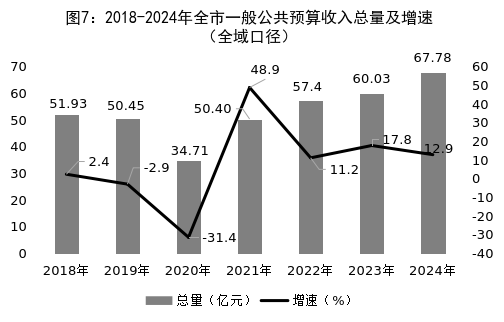 全年一般公共預(yù)算收入67.78億元(全域口徑),比上年增長12.9%。其中,地方稅收收入46.80億元,增長4.6%。