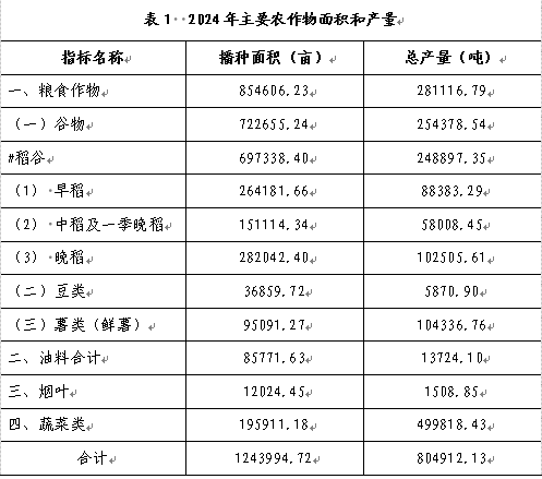 全年糧食總產(chǎn)量28.11萬(wàn)噸,比上年增產(chǎn)3.4%。油料產(chǎn)量1.37萬(wàn)噸,增產(chǎn)18.5%。其中油菜籽3878.8噸,增產(chǎn)21.7%。蔬菜產(chǎn)量49.98萬(wàn)噸,增產(chǎn)3.4%。煙葉產(chǎn)量1508.85噸,減產(chǎn)16.4%。茶葉產(chǎn)量789.49噸,增產(chǎn)2.7%。水果產(chǎn)量10.15萬(wàn)噸,減產(chǎn)6.0%。其中臍橙產(chǎn)量8.81萬(wàn)噸,減產(chǎn)5.5%。