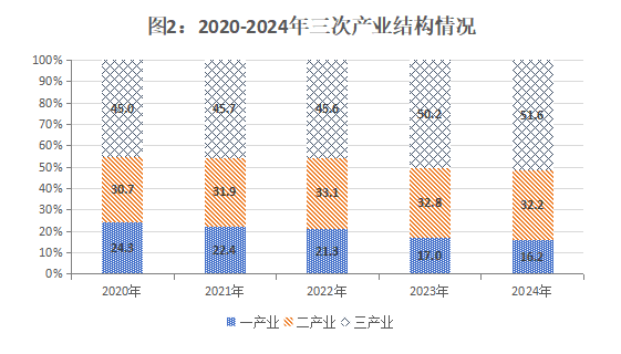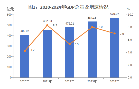 經(jīng)濟(jì)總量。根據(jù)地區(qū)生產(chǎn)總值統(tǒng)一核算初步結(jié)果,2024年全縣地區(qū)生產(chǎn)總值(GDP)570.07億元,按可比價(jià)格計(jì)算,比上年增長(zhǎng)7.0%,其中,第一產(chǎn)業(yè)增加值92.33億元,增長(zhǎng)2.7%;第二產(chǎn)業(yè)增加值183.65億元,增長(zhǎng)7.6%;第三產(chǎn)業(yè)增加值294.09億元,增長(zhǎng)8.3%。三次產(chǎn)業(yè)結(jié)構(gòu)比為16.2:32.2:51.6,與2023年比,一產(chǎn)業(yè)比重下降0.8個(gè)百分點(diǎn),二產(chǎn)業(yè)比重下降0.6個(gè)百分點(diǎn),三產(chǎn)業(yè)比重提高1.4個(gè)百分點(diǎn)。按常住人口計(jì)算的人均GDP為60405元,比上年增長(zhǎng)7.1%。全縣實(shí)現(xiàn)民營(yíng)經(jīng)濟(jì)增加值349.32億元,比上年增長(zhǎng)7.5%,民營(yíng)經(jīng)濟(jì)增加值占GDP的比重為61.3%,其中實(shí)現(xiàn)民營(yíng)工業(yè)增加值90.22億元,增長(zhǎng)8.9%。