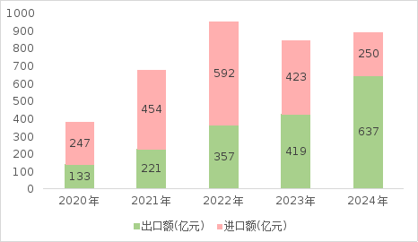 圖2??2020年—2024年貨物進(jìn)出口總額