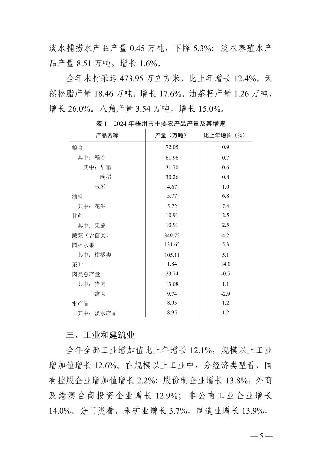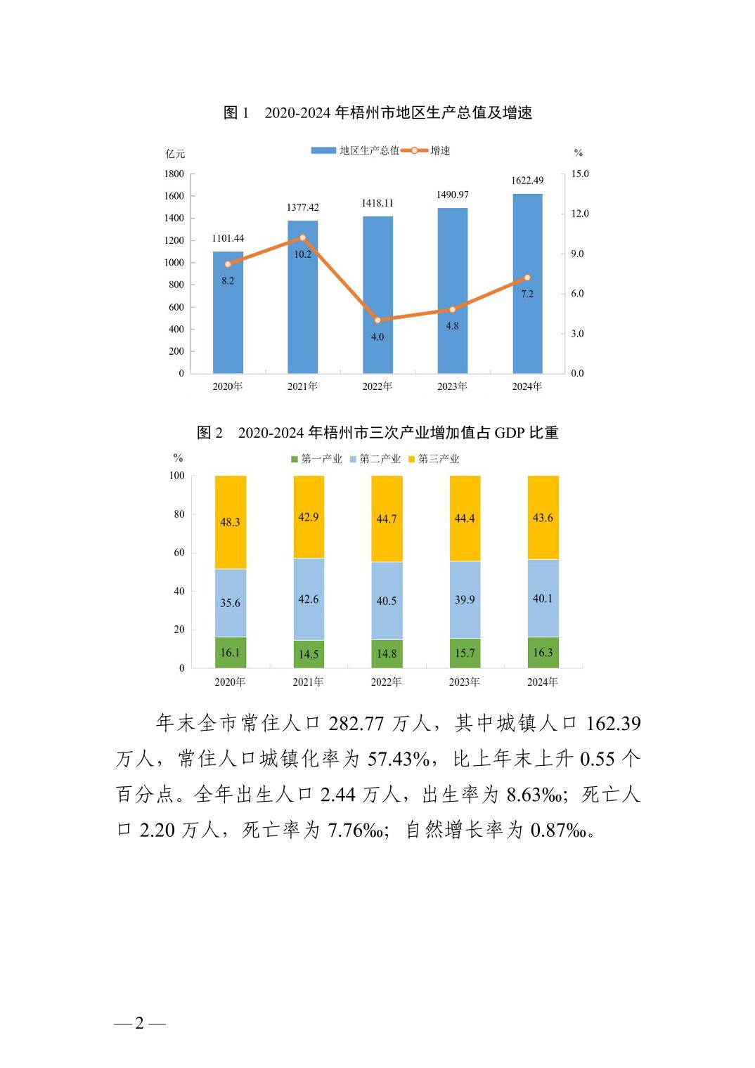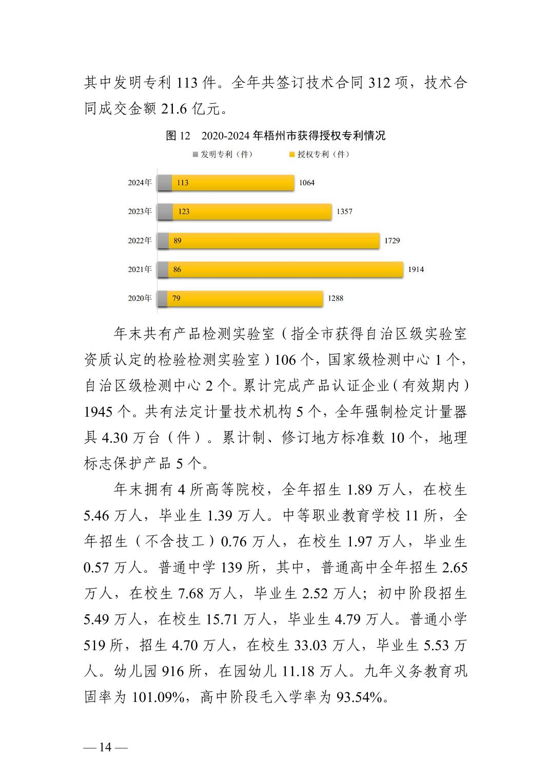 2024年廣西壯族自治區(qū)梧州市人民政府國民經(jīng)濟(jì)和社會(huì)發(fā)展統(tǒng)計(jì)公報(bào)(2025年更新)