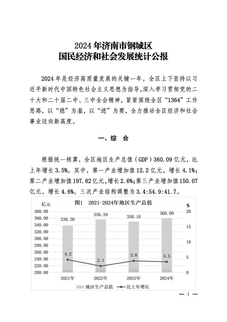 2024年濟(jì)南市鋼城區(qū)人民政府國民經(jīng)濟(jì)和社會發(fā)展統(tǒng)計(jì)公報(bào)(2025年更新)
