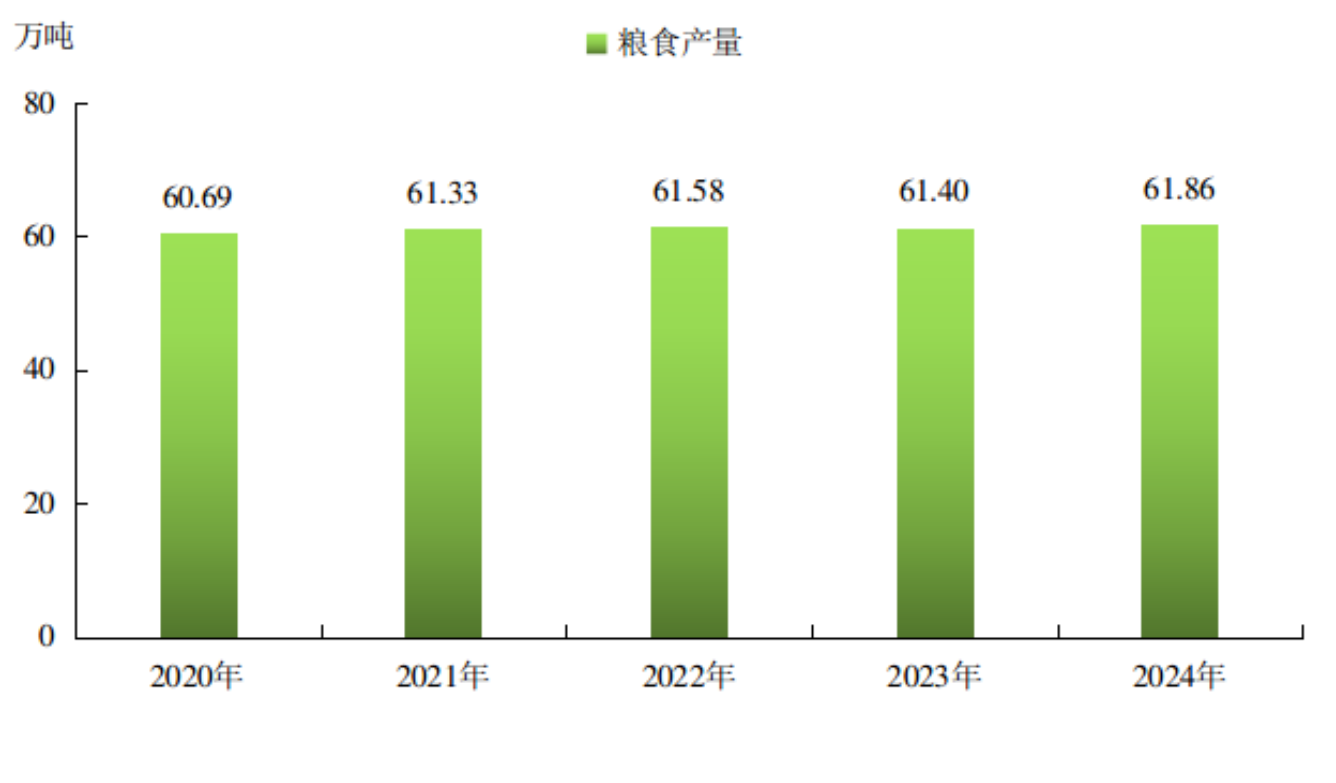 全年糧食總產(chǎn)量61.86萬(wàn)噸,比上年增加0.45萬(wàn)噸,增長(zhǎng)0.7%。其中,春收糧食產(chǎn)量0.48萬(wàn)噸,增長(zhǎng)4.4%;早稻產(chǎn)量27.33萬(wàn)噸,增長(zhǎng)0.8%;秋收糧食產(chǎn)量28.49萬(wàn)噸,增長(zhǎng)0.5%。全年谷物產(chǎn)量58.67萬(wàn)噸,增長(zhǎng)0.7%。其中,稻谷產(chǎn)量51.61萬(wàn)噸,增長(zhǎng)0.7%;玉米產(chǎn)量7.04萬(wàn)噸,增長(zhǎng)1.2%。
