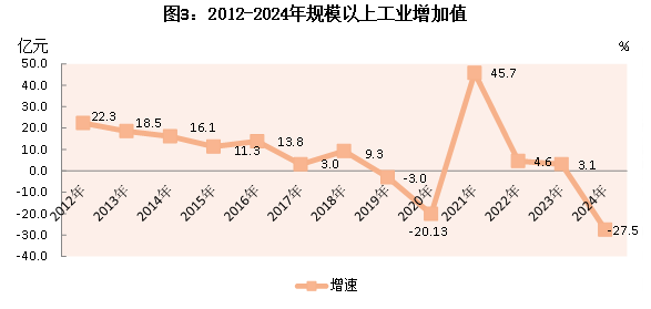 2024年規(guī)模以上工業(yè)企業(yè)增加值同比下降27.5?%,其中:規(guī)模以上制造業(yè)增加值同比增長(zhǎng)0.9%,規(guī)模以上電力、燃?xì)饧八纳a(chǎn)和供應(yīng)業(yè)增加值同比下降38.1%。規(guī)模以上工業(yè)企業(yè)累計(jì)銷售產(chǎn)值完成260706萬元,同比下降30.1%,工業(yè)品產(chǎn)銷率為97.5%。