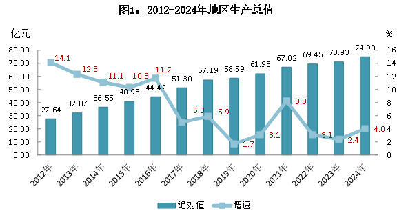 初步核算,2024年全縣生產(chǎn)總值達(dá)74.90億元,比上年同期(以下簡(jiǎn)稱同比)增長(zhǎng)4.0%。分產(chǎn)業(yè)看,第一產(chǎn)業(yè)增加值完成19.43億元,同比增長(zhǎng)4.5%,第二產(chǎn)業(yè)增加值完成13.84億元,同比下降5.9%,第三產(chǎn)業(yè)增加值完成41.63億元,同比增長(zhǎng)7.3%。