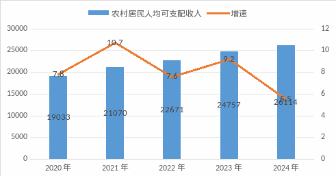 圖?5?2020-2024年屯留區(qū)農(nóng)村居民人均可支配收入