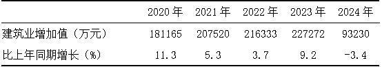 表三? 2020-2024年建筑業(yè)增加值和增長(zhǎng)速度