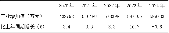 表二? 2020-2024年工業(yè)增加值和增長(zhǎng)速度